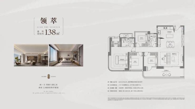 大平层江景视野+超配的一线装标+楼下即享隈研吾大师艺术地标+享白鹅潭滨江约2公里精粹生活圈,舒展生活,YYDS!