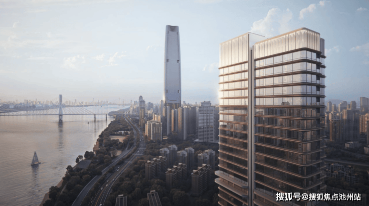 统领长江天元所有设计语言的核心哲学,是 “映江揽境” 。这四字蕴含了项目与长江关系的深度思考:建筑不应是阻挡视线的屏障,而应成为映照江景的“镜面”与收纳风光的“容器”;生活不应是旁观风景,而应是被江河气象环抱、沉浸其中的“境”。