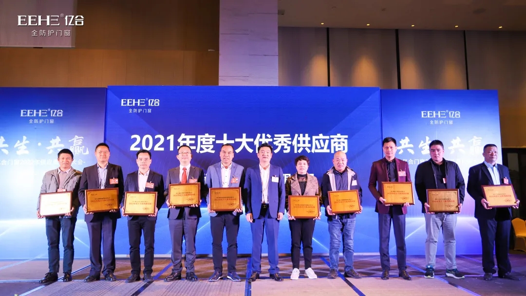即将过去的2021年,在国际大宗商品价格持续暴涨的影响下,亿合门窗仍旧凭借百折不饶的精神,以及优质的产品和服务,向广大用户交上了一份漂亮的答卷。在这背后,离不开全体供应商的配合和支持。此次会上,亿合门窗为2021年度表现先进的供应商伙伴颁发了“2021年度十大供应商”以及“2021年度优秀供应商”两大奖项。