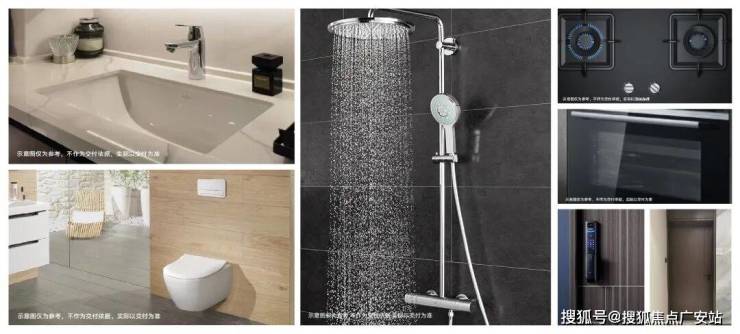 严选全球知名品牌,升维居住体验:采用德国精工品牌高仪、唯宝卫浴;配置王力入户门,飞利浦电子锁,西门子油烟机、灶具等,为追求品质生活的家庭营造尊崇舒适的日常享受。