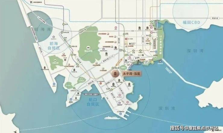 太子湾片区规划总建筑面积约170万㎡,总占地约69万㎡,汇集办公、居住、商业、艺术中心、酒店等多元业态。以“一湾三坊城中城”概念打造布局,在独一无二的太子湾滨海区,汲取山、海、城三大元素,构建高端“居住坊”、“商业坊”、“港务坊”。凭借独树一帜的规划与强大的枢纽功能,成就高端元素集萃纷呈的“城中之城。