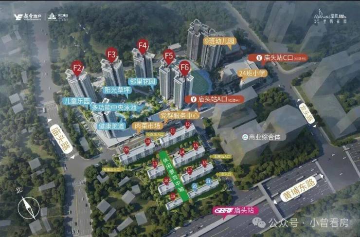 项目位于黄金主动脉地铁5号线庙头站(在建中,计划今年开通)上盖,近地铁13号线南海神庙站,双轨交汇。