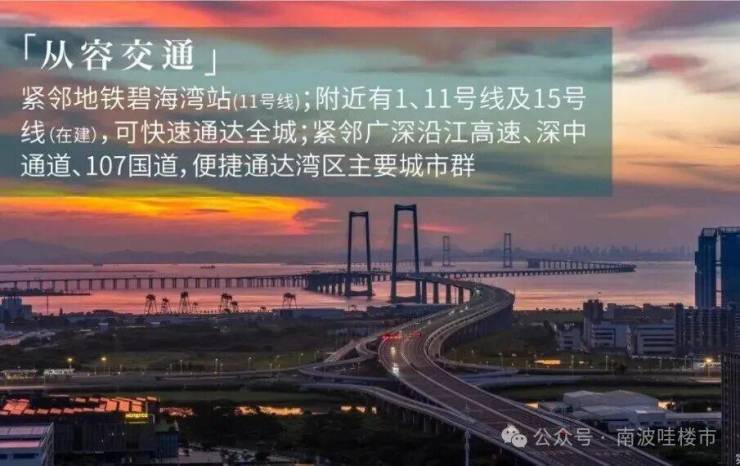 交通方面:距离11号线碧海湾站直线距离约500米,步行10分钟可达,30分钟就能直达福田CBD。而且距地铁1号线西乡站直线距离约1000米。