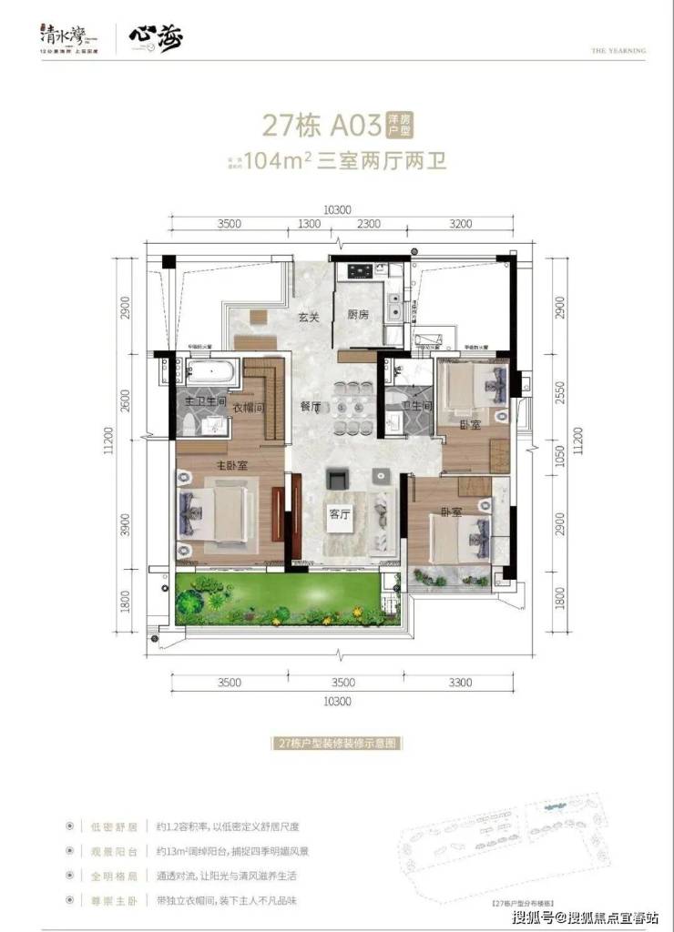 15、16号楼103㎡户型,三房两厅两卫27#02、03号位104㎡户型,三房两厅两卫