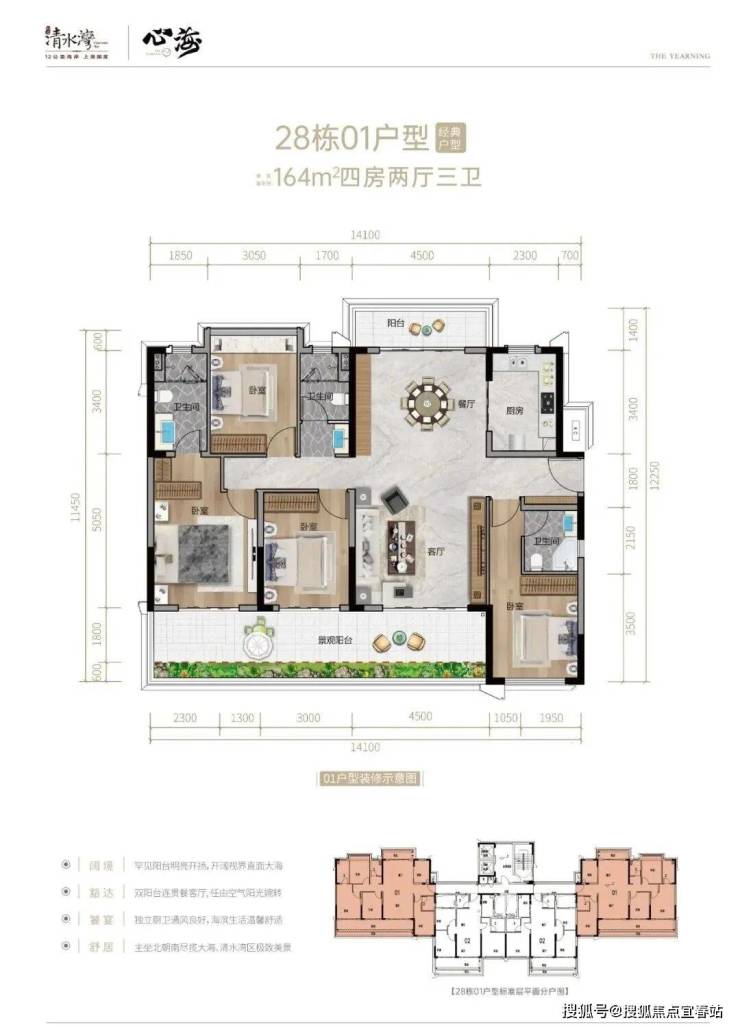 15#05号房、16#01号房、29#01号房141㎡户型,四房两厅两卫15#01号位、16#05号位、28#01、05号、164㎡四房三卫