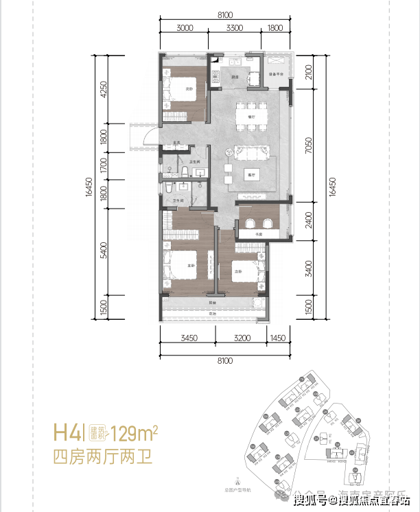 128㎡:四房两厅两卫