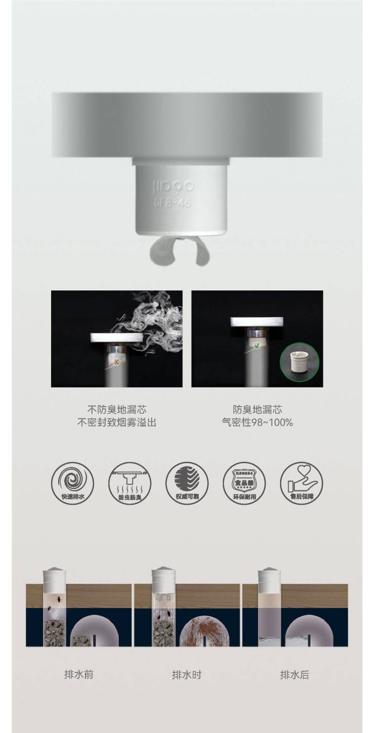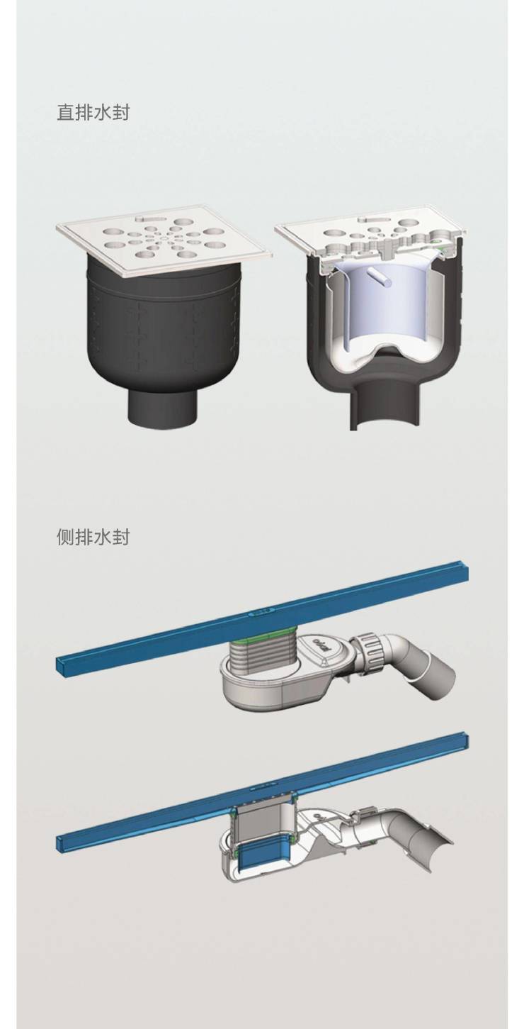 侧排和直排水封核心件具有排量大、极致防臭的特点