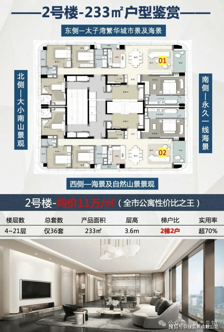 【深圳太子湾鲸域】山海交响的立体都会,以时代笔触勾勒未来版图**立体经纬 通达世界的脉搏**如巨鲸跃海,项目以3.6米层高擎起云端视野,3梯2户的尊崇动线似流动的琴弦,串联起233-307㎡的鎏金空间。127个车位如珍珠嵌于地下,静候归航。