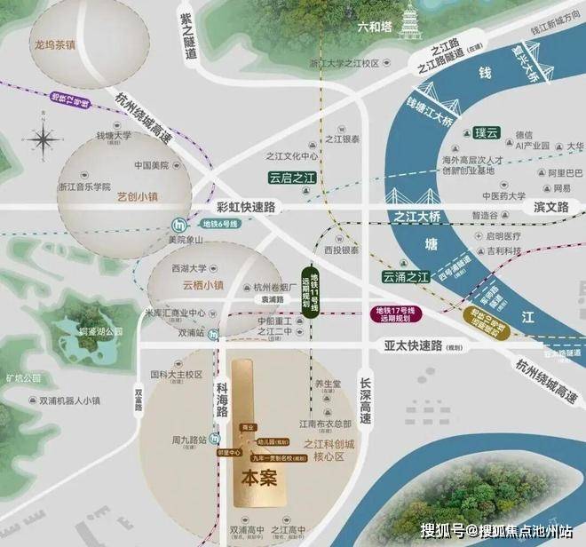 除此之外,彩虹快速路等城市主干道环绕四周,一桥双隧道,更将之江与滨江等板块紧密连接。紫之隧道、之江路隧道(在建)有效打通区域交通脉络。远期规划的三条跨江隧道将进一步加强之江板块与滨江的联系。立体化的交通网络,高效抵达城市主要商圈,覆盖全城重要节点。