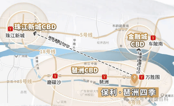 地铁——地铁4号线与8号线的交汇万胜围站300多米;地铁23、28号线规划中形成四地铁交汇;4号线1站到金融城车陂南站,换5号线直接到珠城,交通便利;