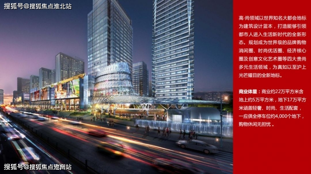 项目集逾14万方高端住宅、约22万方旗舰商场、2幢精品酒店及4幢办公写字楼于一体,建成地标性的高尚消费圈。同时设有名店区及多个表演场地,构建购物消闲圈、时尚优活圈、经济核心圈、创意文化艺术圈四大尊尚领域。
