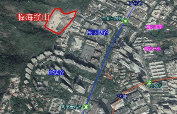距离项目最近的地铁12号线“花果山”站,百度测量直线距离为550米左右,而距离地铁2号线“海上世界站”与“水湾站”百度测量大致距离为1200米。