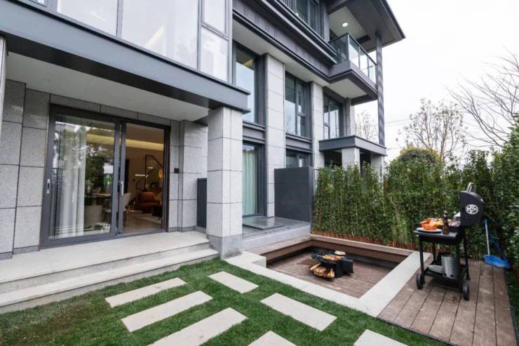 前庭后院亲近自然的设计,与大面宽厅堂无缝衔接;户外下沉式庭院巧思,为烧烤餐叙、围炉茶话增添沉浸式氛围。