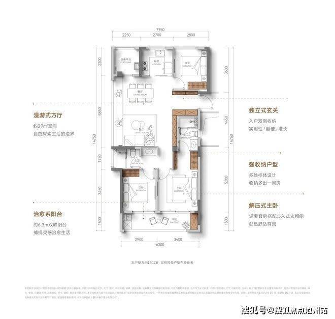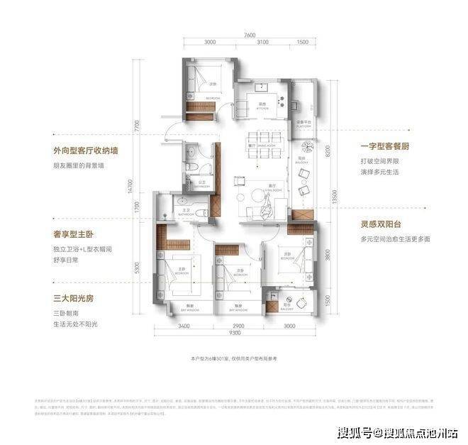 户型方正,没什么浪费面积,虽然是中间套设计,但做到了全明户型,通风效果好;南向三开间,双联阳台+飘窗,南向采光充足,阳光满堂;超配S墙,隐藏收纳柜,让小家越住越大,可以说杭州少见。