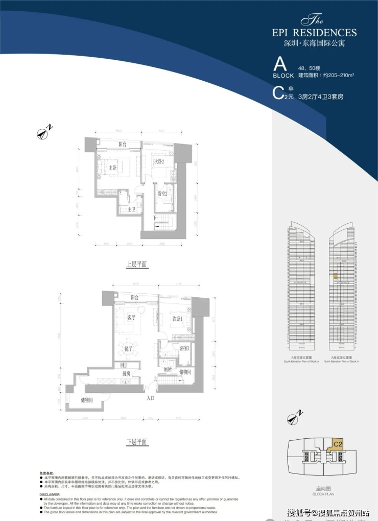 A座48层C2单位,建面约210㎡,3房2厅4卫3套房