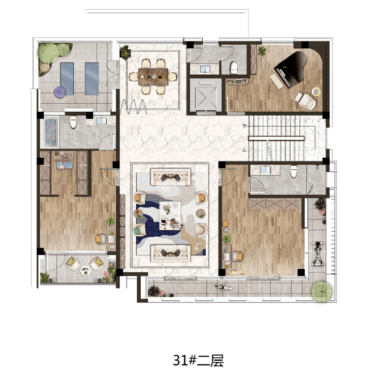 项目北侧50米,8000方商业,设立了24小时便利店、生鲜超市以及咖啡店、智能产品体验街区等轻奢业态。
