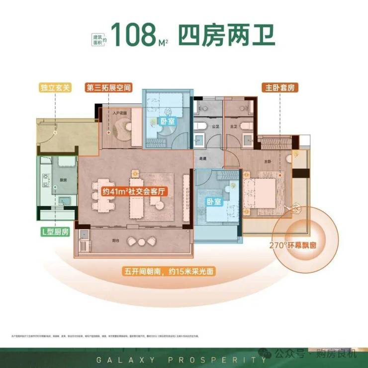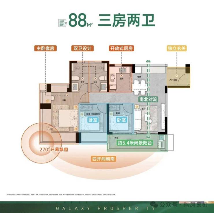 🔘零公摊设计:LDKG一体化+双卫配置+主卧270°飘窗