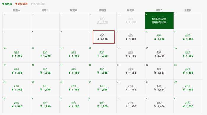 北京五矿君澜酒店平时1500元左右的入住套餐,在国庆假期前几日几乎每晚都在2000元以上,其中10月2日的预定价格在3000元以上。