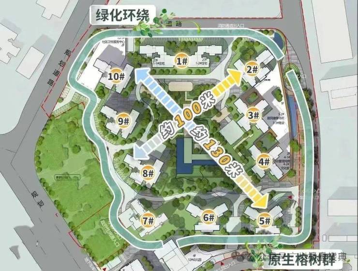 采用围合式的布局,还为项目带来了南北最大约130米、东西最大约100米的楼间距,这样的设计,带来的不仅仅是俯仰天地间的奢阔视野,更能有效保障了鲜氧的灌入,将自然气息流转于生活的每一个角落。