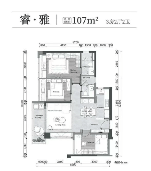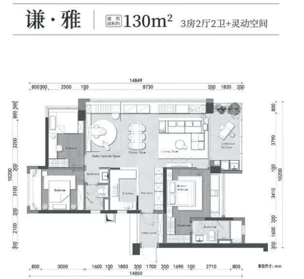 万科·瑧樾府主推建面约107-180㎡三至四房户型,精准契合改善型家庭对空间、功能与审美的多重需求。部分户型采用LDK一体化设计,打通客厅、餐厅与厨房的视觉通廊,营造开阔流畅的家庭互动场域;更有双主卧套房配置,兼顾私密性与尊崇感。