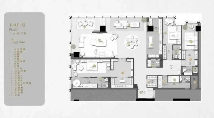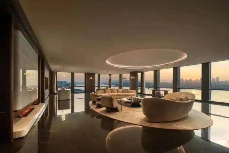 主力户型为400—900㎡大平层,层高约4.3米(远超常规大平层3.4米),配备270°落地玻璃及14米面宽的客厅+主卧景观面,部分户型一体化双厅面积达109㎡,实现“广角视野+空间奢享”双重体验13。