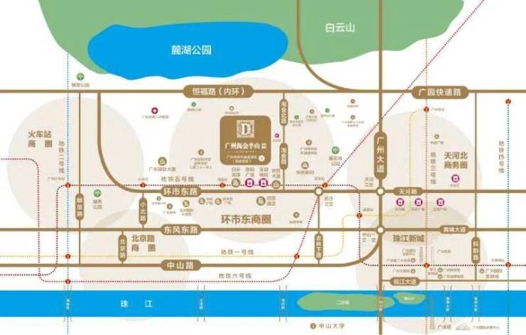位于越秀区淘金路,地处淘金半山之上,北眺白云区 云台花园 麓湖,南望繁华环市东和美丽迷人的小区花园,东临黄花岗公园和豪华尊贵别墅群,西接高级豪宅区,近广州花园的-云道。