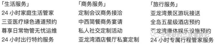 「湾区站位」三大湾区 只此亚龙湾左右逢缘【您在丰盛国际配套的日常尊享】「独享生态」亚龙湾被誉为“天下第一湾”, 揽约8千米银白沙滩,海水清澈澄莹,三面青山相拥。「上层度假」集萃23家五星级酒店群,2大高尔夫球会,5大综合商业配套。「名仕休闲」近享CDF国际免税城等购物天堂,可享直升机空中观光游、潜水冲浪,是成熟的高净值圈层属地。