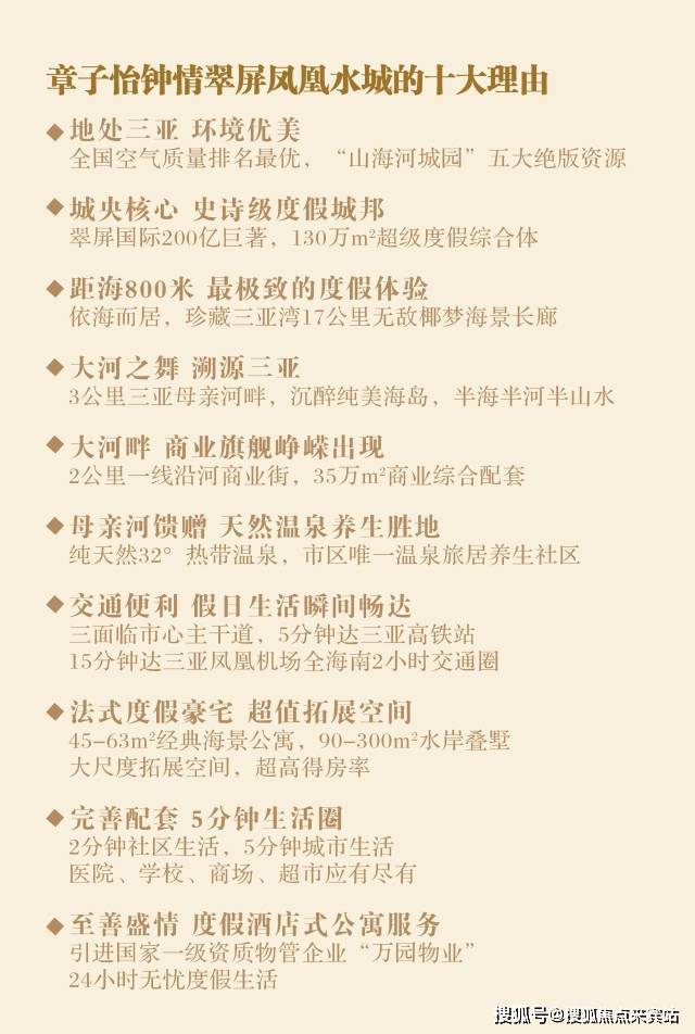 翠屏•凤凰水城,位于北纬18°黄金度假带,尊处三亚城央中心,拥“山河海林城”五大绝版资源优势,靠金鸡岭龙脉山,珍藏三亚湾17公里无敌椰梦海景长廊,城内三亚河上游3公里原生玉带河岸绕城而过,海纳别墅、洋房、公寓、商业、酒店等多元业态,形成“2分钟社区生活、5分钟城市生活、10分钟度假生活”的独特优势,打造公园化、国际化、一站式旅居度假胜地。