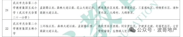 周边社区对口二十一小或二十二小及光谷一初;据网络信息显示一初2025年普高率约51%,周边相对教育资源一般。(地图测量可能存在一定误差,均为直线距离)