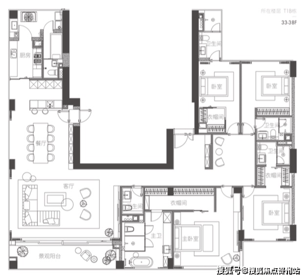 1超9米超宽幕开间,厅出阳台一线海景,三套房设计,主卧L形全景落地窗,270°最佳观海位,动静分区布局有序。