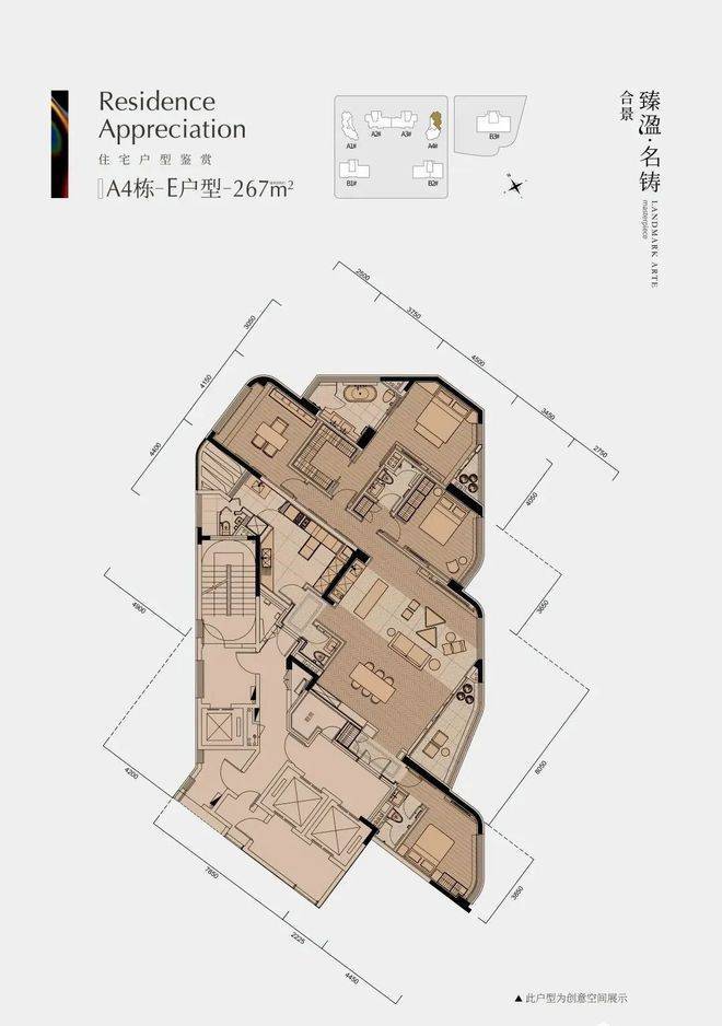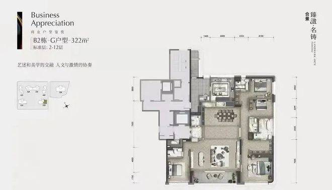 商业大平层有 322 平四房两厅五卫和 403 平四房两厅五卫两种户型,层高约 3.5 米,整体格局合理,动区空间充足。《户型品鉴之住宅》