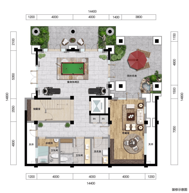 🏘️E户型 套内面积约:445.93㎡