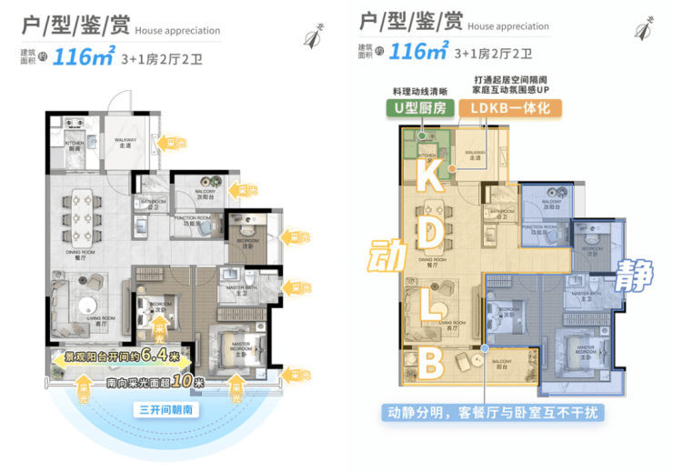 2、建面约116㎡3+1房2厅2卫(横厅)