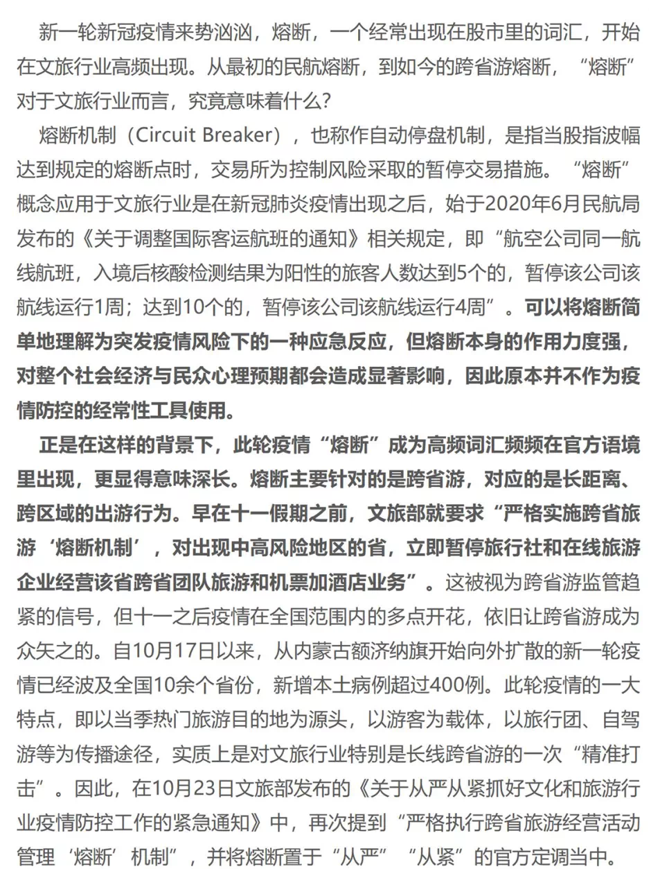 文旅周报|当熔断走入文旅行业,跨省游实行熔断机制意味着什么?