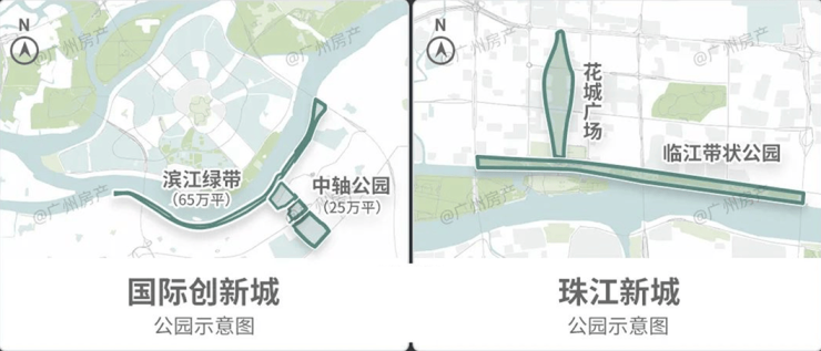 25万㎡中轴公园+65万㎡滨江绿道,面积≈1.6个花城广场,媲美二沙岛的居住环境。