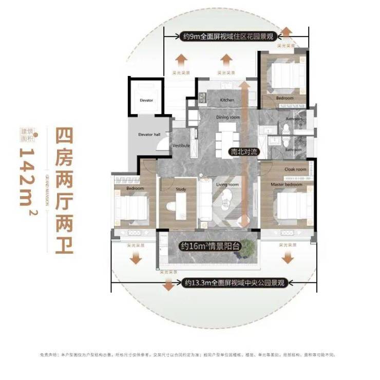 【16F板式小高层】【2梯2户】【约68㎡阔绰方厅】【南向约13m观景面】
