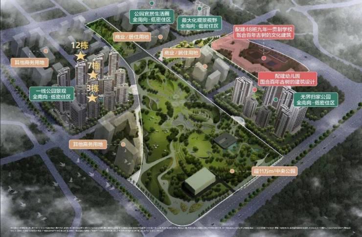 学校就在公园旁,首期地块穿越公园(约300米)即达,享目送式教育