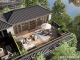 比如下沉庭院,臻选并移植黑松到庭院之内,辅以龙鳞地面铺装,营造《松林龙蜕》诗内老松虬枝苍劲,如龙盘踞的意境。同时以山石层叠、高低景墙和坡度草坪创作一个可容纳小型沙龙的环形聚落,再现《九峰环翠》的山石意向。