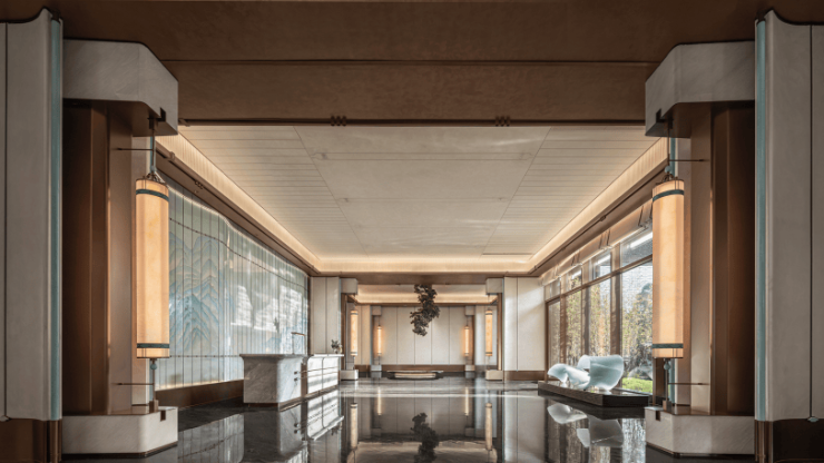项目以东方美学为造园基调,取千古名画《千里江山图》中“游、聚、乐”三处生活场景打造三大核心院落,并精心打造“极境归心”“平湖叠瀑”“曲水流觞”三进制归家仪式,成就一方具有人文内涵的当代东方学府住区。