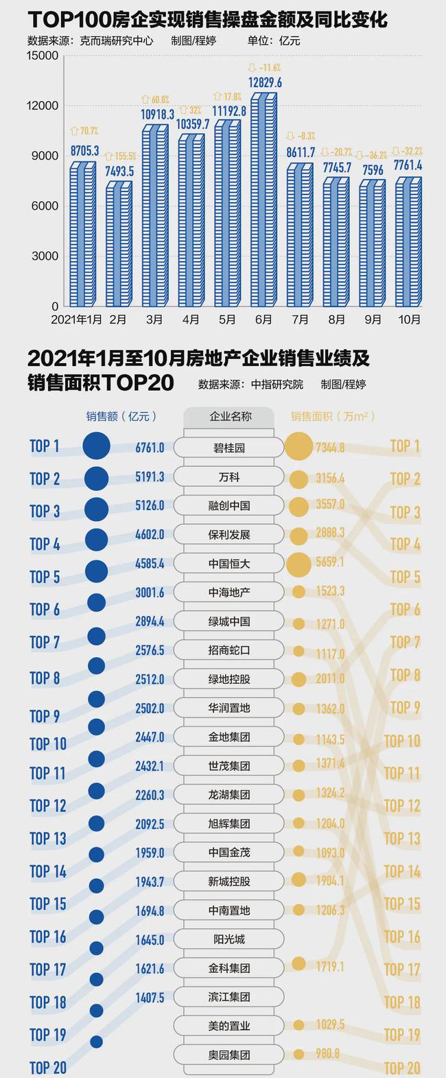 直接后果是,房地产开发投资的资金来源中,居民部门扮演了越来越重要的角色。杨为敩认为,“居民通过按揭贷款购买期房,对于房企来讲也是一种变相融资方式,但今年房企筹资性现金流收缩的同时,这条经营性现金流同样难以为继。”以国家统计局发布的数据测算,今年第三季度,全国商品房销售面积与销售额分别同比下降约12.5%和14.1%。而据克而瑞研究中心数据,下半年以来,Top 100房企单月业绩连续4个月同比下跌,9月、10月同比降幅均超过30%,“金九银十”不再。