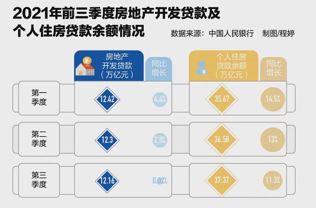 房地产开发贷也在快速失血。2021年三季度末,房地产开发贷余额同比接近零增速,仅微增0.02%,较去年同期大降逾8个百分点。“因为涉房贷款占比一直超标,目前开发贷基本上是到期一笔才能新发一笔,不可能新增。”一位股份制银行人士告诉《中国新闻周刊》。央行金融市场司司长邹澜在10月15日的发布会上对外解释称,对要求“红档”企业有息负债余额不得新增,部分金融机构误解为银行不得新发放开发贷款,企业销售回款偿还贷款后,原本应该合理支持的新开工项目得不到贷款,也一定程度上造成了一些企业资金链紧绷。