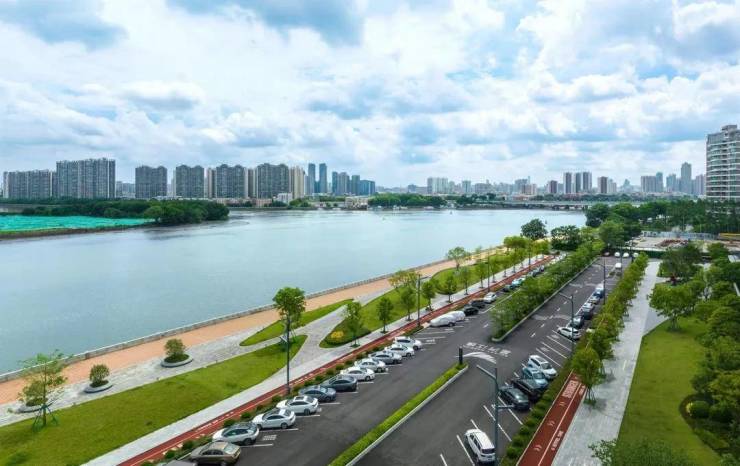 而且项目所在位置是三江交汇处,江面开阔,距离珠江最近的地方只有90米,整个项目坐拥700米长江岸线,还专门在江边打造了约1.8万m的滨江公园。