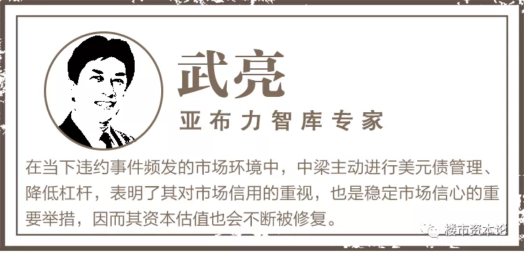 亚布力智库研究员武亮表示,在当下违约事件频发的市场环境中,中梁主动进行美元债管理、降低杠杆,表明了其对市场信用的重视,也是稳定市场信心的重要举措,因而其资本估值也会不断被修复。