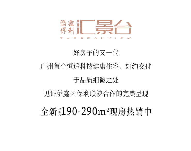 侨鑫·保利·汇景台秉承优于世界卫生组织健康住宅的标准于广州首次引入恒适科技健康系统以仿生学为技术理念,以水为能量载体为每个家创造“独立的小气候”精准匹配居者对健康舒适生活的需求