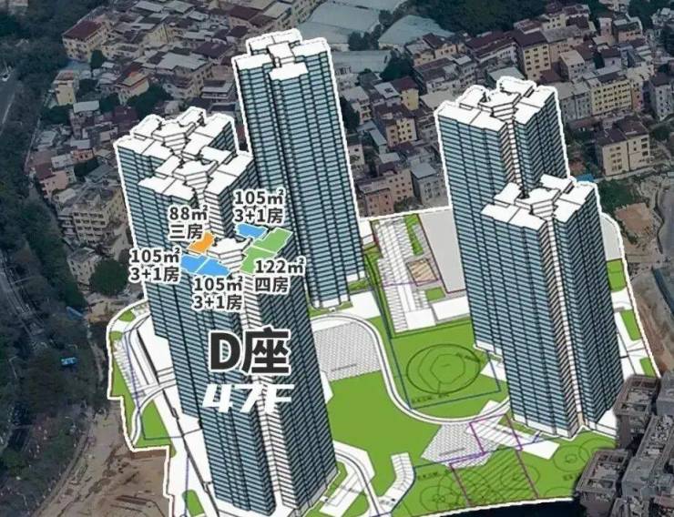 首推D座,总层高47层,3梯6户的设计,2026年底收楼