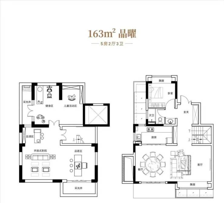 约145-163叠墅/洋房户型,格局方正阔气,大尺度奢适生活,仰望是星空,远眺即美景。叠加面宽约8米,空间阔绰,这样的宽景别墅才是居住的享受。