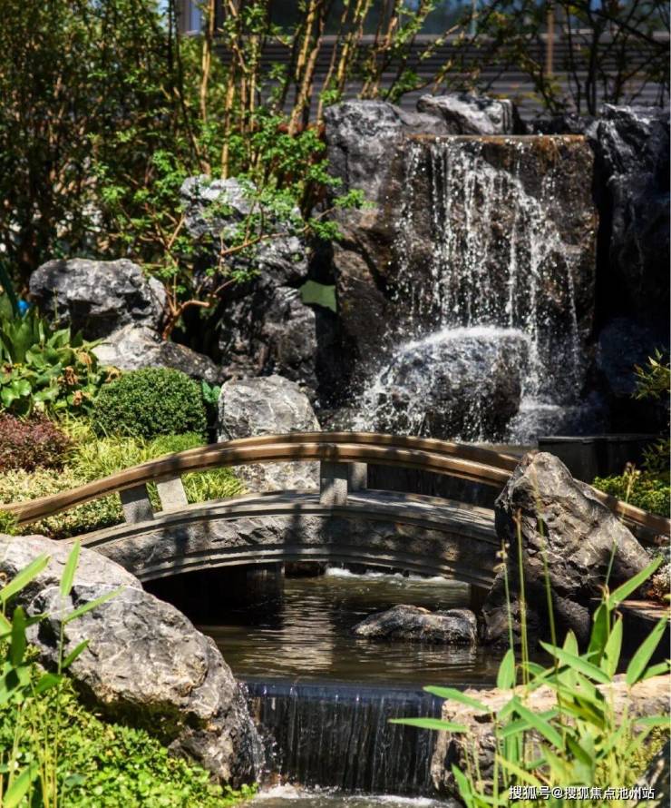 “两水夹明镜,双桥落彩虹”,桥之妙,在于其形。景石点缀,有拱桥静卧水上,圆润流畅,精致小巧,与周围花木倒影成趣。漫步至此处,凭栏观鱼,休憩赏景两相宜,成为园林中的点睛之笔。