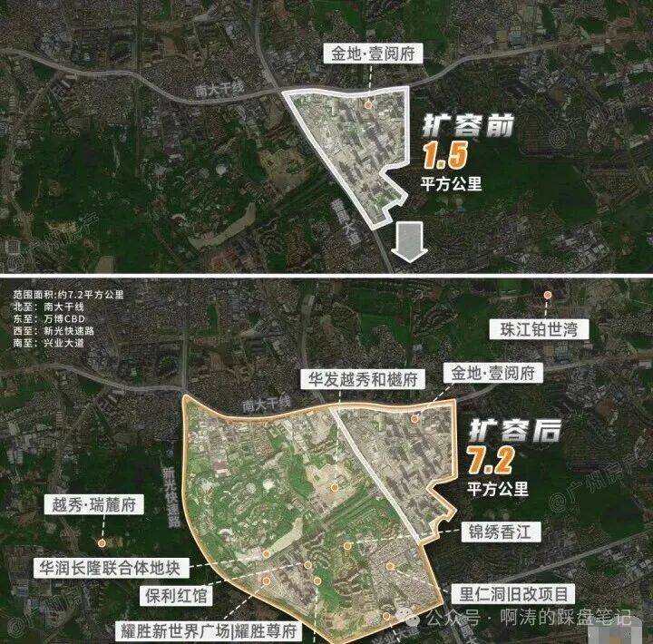 扩容至近五倍,规模赶超6.19平方公里的珠江新城;