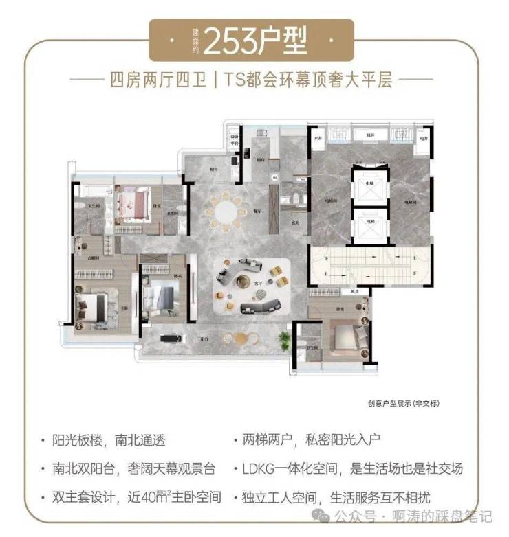 全社区专梯到户四至五房奢居产品,大面宽、大进深、纯南向专梯到户奢宅