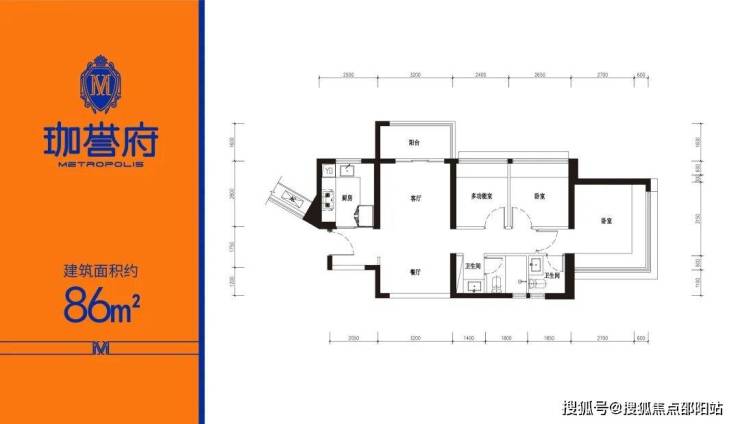 约86㎡(横厅)3房2卫:总价374万